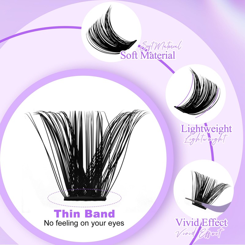 - Individual lashes set: includes 80D+100D cluster eyelashes, spike eyelashes ("fairy lashes"), natural underlashes, gentle eyelash glue and precision tweezers - all for salon-like volume and effortless work in