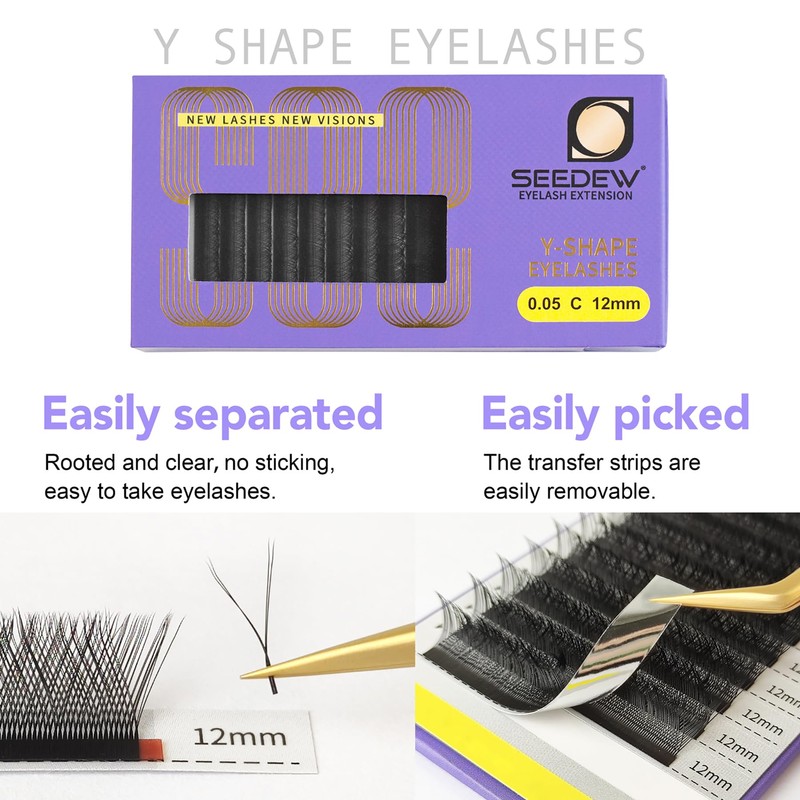 • ❤️【YY Lashes】The base of 4 lash extensions are bonded together and split into 2 lash extensions, forming a Y shape eyelash extension. The lightweight Y shape eyelashes with long flat stem design can be easier grafted to your own eyelashes. A lash artist can serve more clients in less time. Beginner friendly.