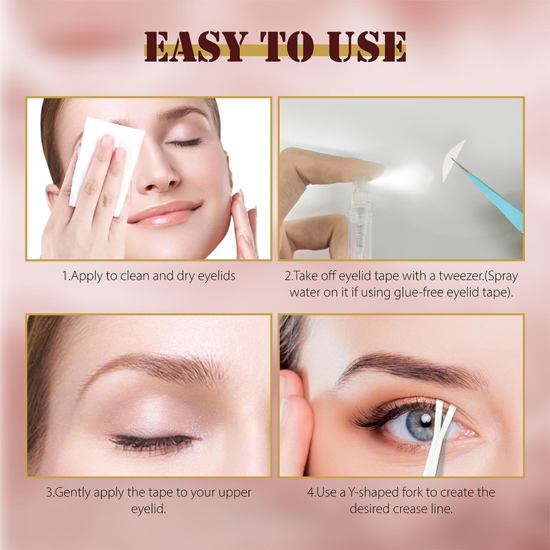 - Note: Glue-Free Eyelid Tape, you have to spray water when using it to stick, be careful to control the amount of spray water.