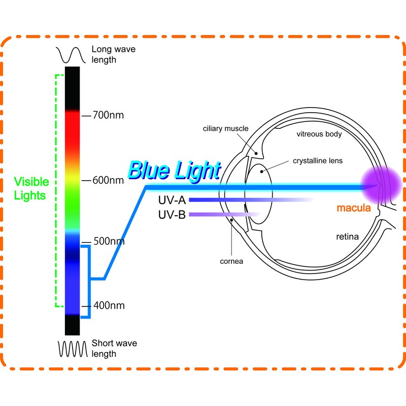 - Anti-Blue Light blocking between 380nm~495nm for wide range HEV protection.