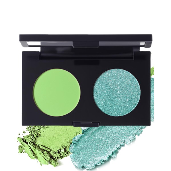 Eyeshadow Makeup Palette, Double Colors Green Matte & Glitter Shimmer Metal Diamond Eye Shadow Powder, Highly Pigmented Long Lasting Waterproof Make Up Palette, Eye Makeup Gift for Women Girls - 09#