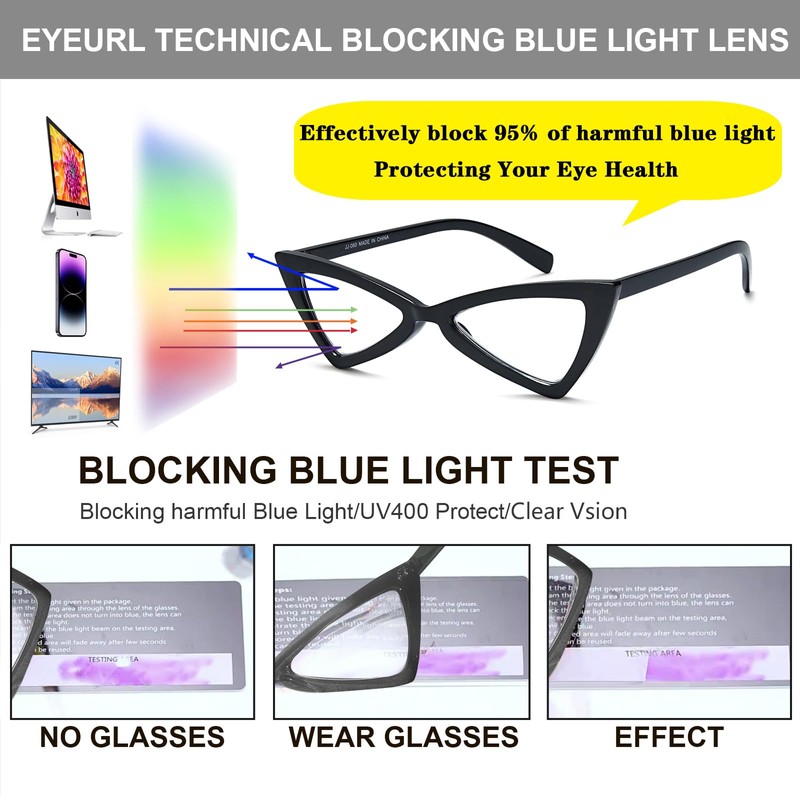 • 👓【Blue Light Blocking Reading Glasses】EYEURL cat eye reading glasses with UV400 protection, Blue light blocking lens, anti glare and cut more than 95% of harmful blue light. Reduces eye strain and discomfort caused from long periods of reading, using personal computer/ TV/ phones/laptop and work under fluorescent lights.