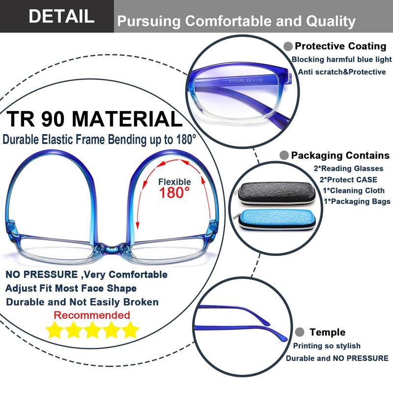 - 【Quality Customer Service】Believe that our trendy reading glasses will meet or exceed your expectations. Available to provide you with a 30-day free money back guarantee. Any questions or problems, Please contact us, we will reply you within 24 hours.