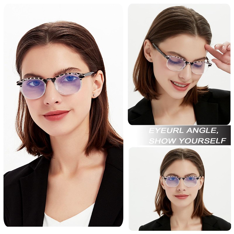 - 【Premium and Durable Frame】The frame of our blue light reading glasses is made of advanced materials, which not only have a delicate appearance but also can withstand falling and twisting. What's more, the flexible hinges not only provide better durability, but also can be adjusted according to the your face shape. The readers for women allow you to enjoy a more comfortable experience during work or exercise.