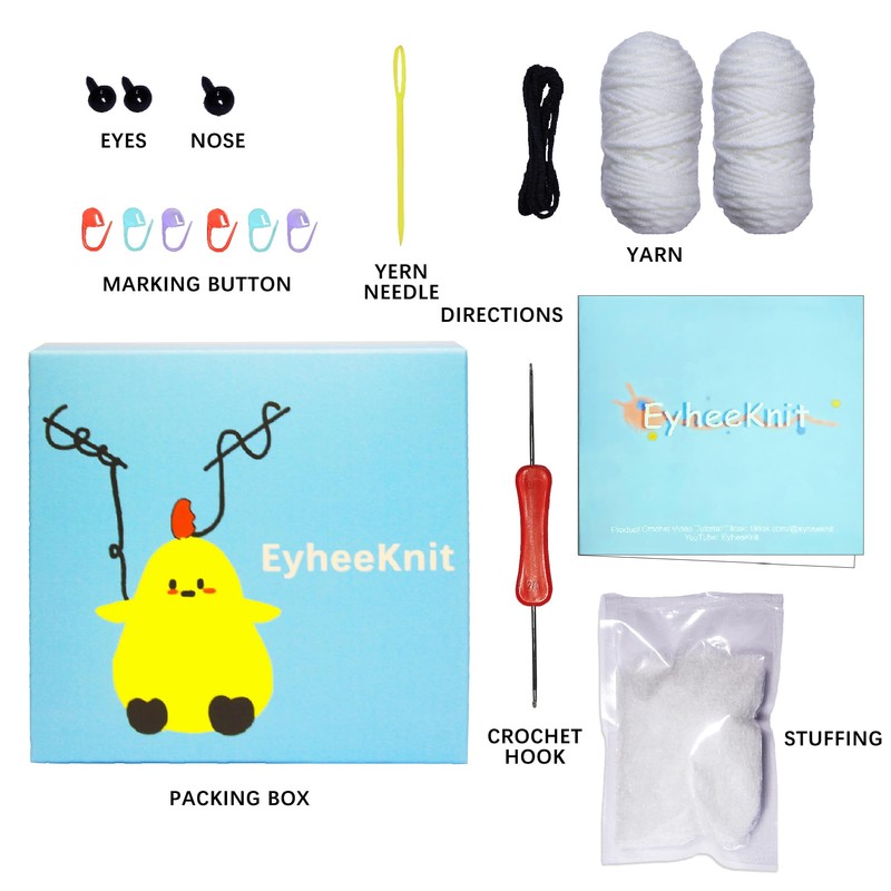 - Crochet Animal Kit for Beginners: It contains all materials such as thread, crochet hooks, marker buttons, eyes, sewing needles, instructions and so on, It is an easy beginner's kit