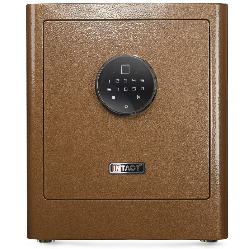 The Intact quick access fingerprint compact safe features an industry leading biometric touch activated keypad module. Quickly and conveniently access the safe with your finger or passcode, no keys needed. The next-gen capacitive biometric sensor is quicker and more accurate than older optical scanning sensors. This innovative technology uses a solid capacitive sensor to instantly read and encrypt a user's fingerprint with a proprietary biometric algorithm. This safe is built solid and strong with an all steel construction of 1.5mm body and 3mm door thickness. This tall personal vault style design is perfect for storing valuables such as medicine, tablets, cameras, jewelry and handguns. This safe includes a mounting hardware that allows users to bolt the safe to a wall or cabinet. The biometric sensor is powered by 4 AA batteries (included) which can last up to 2 years with regular use. The safe also includes a backup power pack that can power the safe externally. For a third traditional access option each safe includes a set of laser cut keys that can be inserted in a hidden lock access point under the magnetized name plate. Once the safe is unlocked a turn of the safe’s round module will retract the solid steel deadbolts allowing the door to be opened. This safe also includes unique features such as an internal LED light, one removable shelf. This safe is not water or fire proof rated. All Intact safes included a limited lifetime warranty.