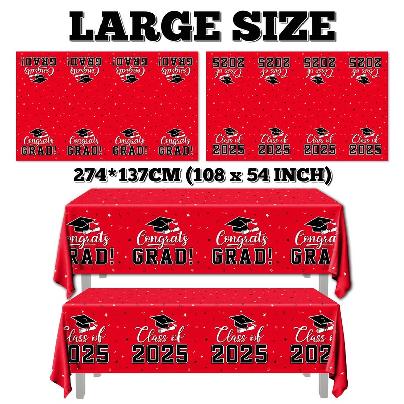 - 【Graduation Theme】Our red graduation tablecloth specially designed with graduation cap, graduation scroll and grad confetti, that is embellished with elegant letters “Congrats GRAD!” “Class of 2025”. Fantastic design creates a dynamic and cheerful atmosphere for graduation party.