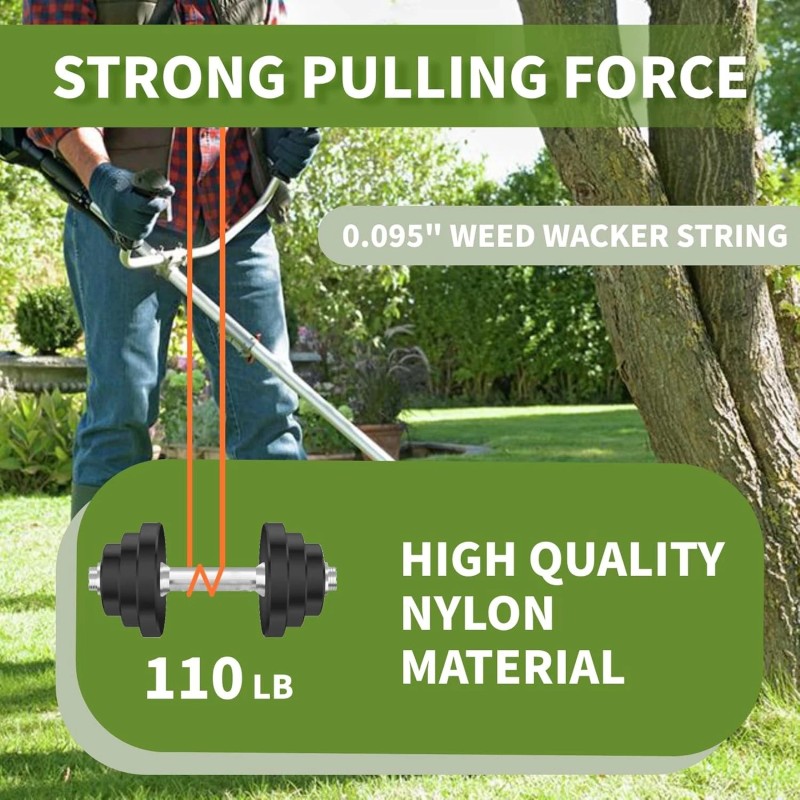- 【Longevity】The commercial grade 0.095" weeding line is made from tough nylon polyamide material, making it durable and resistant to breakage. Thicker trimmer cords are less likely to wear out quickly, extending their lifespan and saving you money on fewer replacements in the long run. frequency to save costs.