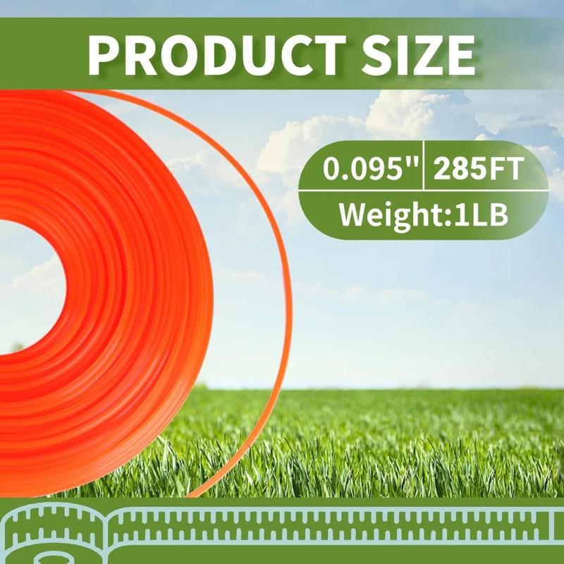- 【Heavy Duty 095 Trimmer Line】The 0.095/4.5mm trimmer line can handle more complex jobs including thicker grass, shrubs and light woody stems. Compared with the 0.080" or 0.065" trimmer line, the 0.095 trimmer line has a larger wire diameter. The mowing rope can cut more types of grass and has a wider range of cutting environments. Therefore, the 0.095 line is the best choice for mowing heavier on your lawn or performing some commercial work.