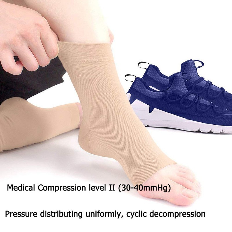 - Medical Compression level II (30-40mmHg) - Pressure was distributing uniformly, cyclic decompression, effective improve blood circulation healthier. Soft and close-fitting which is good to weak ankle. Apply to men and women of various ages