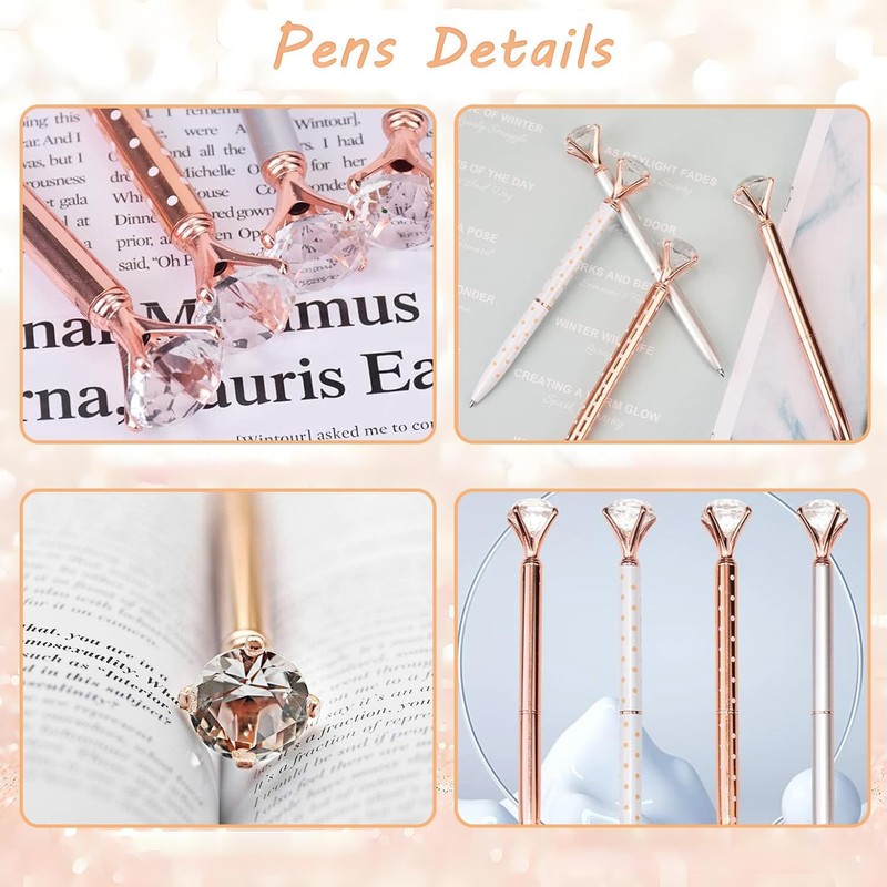- 【Diamond Pen】The top of the ballpoint pen is designed with diamonds, which looks noble. The diamond on the top, and the pen tip will appear, and you can write