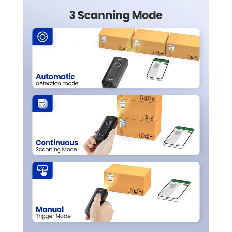 Eyoyo Eyoyo 2D Bluetooth Barcode Scanner Wireless with Clip, 2000mAh Battery ...