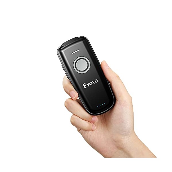 Eyoyo Mini 1D Bluetooth Barcode Scanner Wireless, With Power On/Off Button, Volume Up/Down Button,1500mAh Rechargeable Battery, Portable Bar Codes Reader for Windows, Mac Computer, Android, iOS Phones