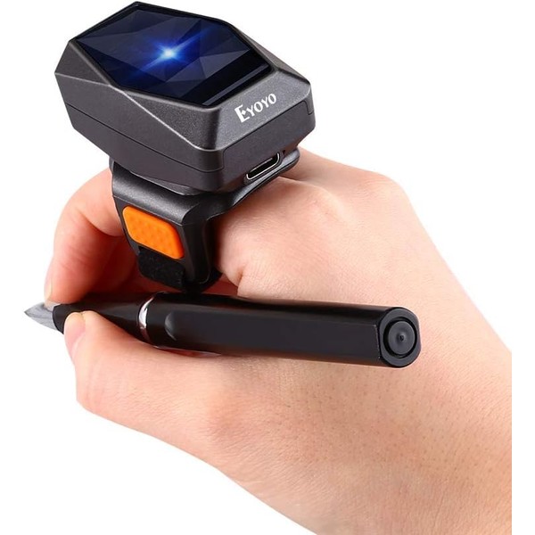 Eyoyo Wearable Finger Ring Barcode Scanner, 3-in-1 Mini USB Wired & 2.4G Wireless & Bluetooth Scanner, Image 1D QR Bar Code Reader PDF417 Data Matrix Screen Scan Kompatibel mit Smartphone PC