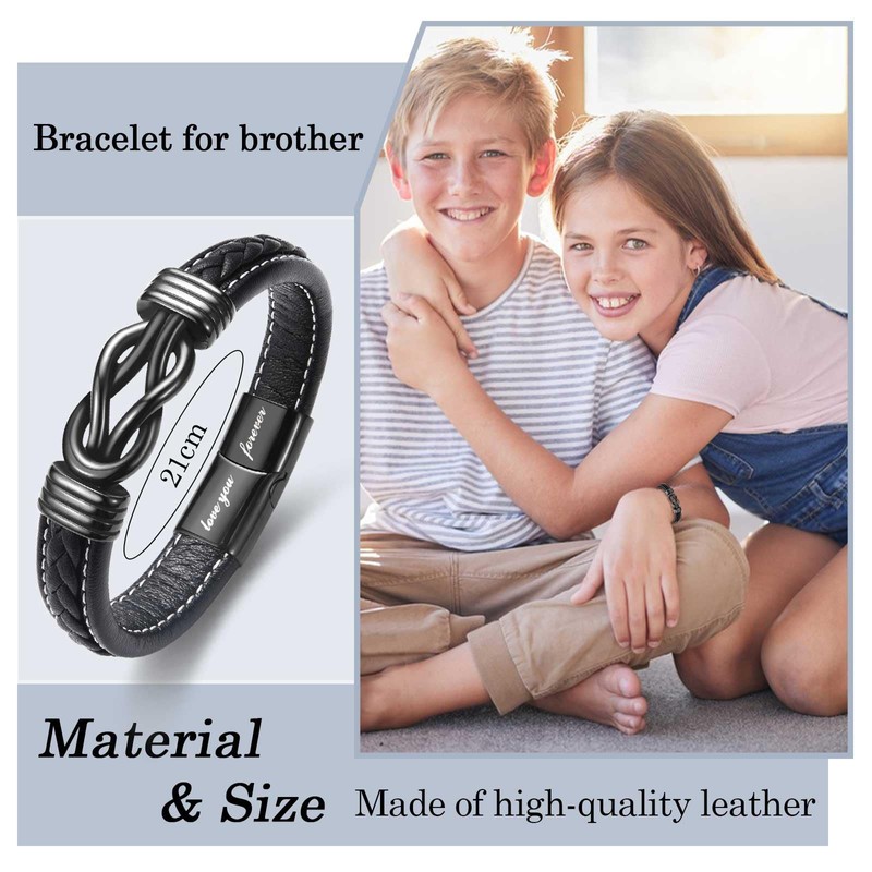 - Brother Bracelet - The present for brother features 21cm in length, ensuring a comfortable fit. Made with good quality leather to suitable for sensitive skin. The elegant buckle bears the message "love you forever," serving as a constant reminder of your love and appreciation for him. A cherished big brother gifts/ little brother gifts to celebrate important moments.