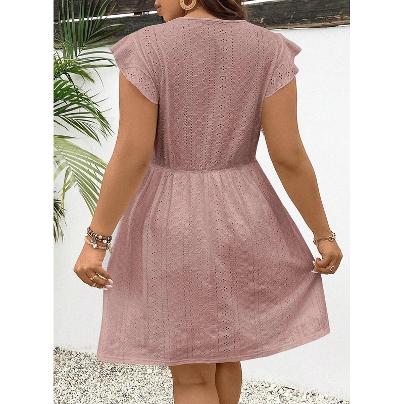 - Features:Women plus size dresses with ruffled cap sleeves,lace v neck patchwork,embroidery eyelet,loose fit,solid color,boho mini dress,this plus size dresses fit any body shape,making every woman look effortlessly chic and feminine