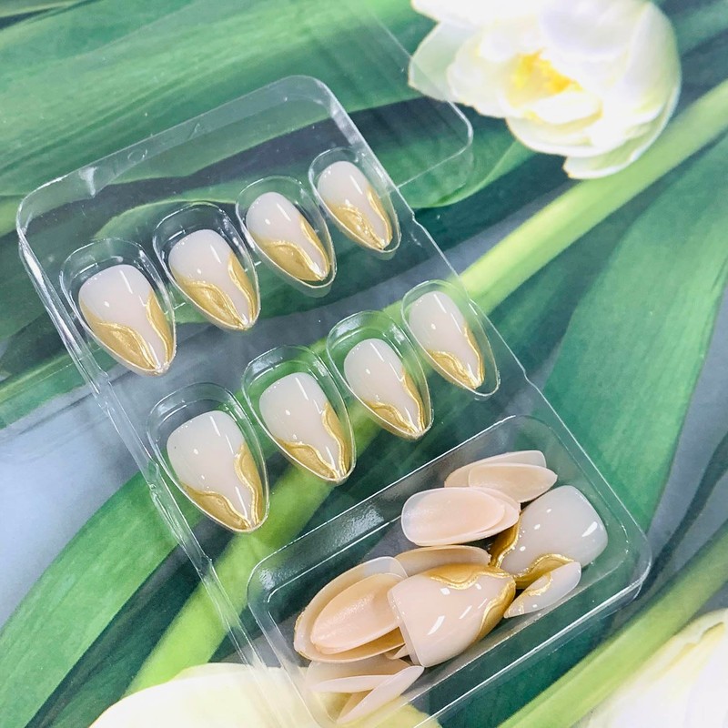 - Package: You'll get 24 french almond false nails in 12 sizes. 1 mini nail file, 1 small wooden stick, 1 piece of nail glue sticker. Almond glue on nails are perfect for most people's nails