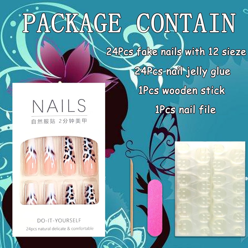 - Package: You'll get 24 french long square false nails in 12 sizes. 1 mini nail file, 1 small wooden stick, 1 piece of nail glue sticker. Glue on nails are perfect for most people's nails