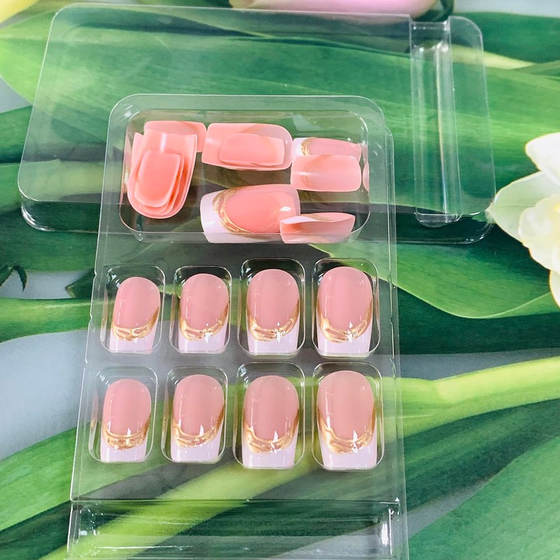 Remove the glue sticker and keep the fake nail tip for next time use.