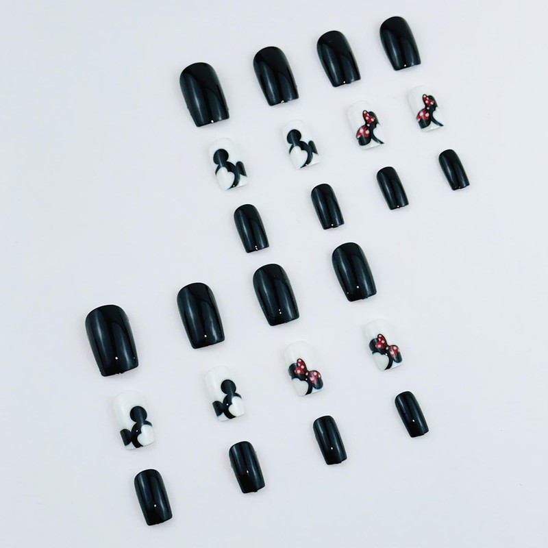 EYZOTSF Press on Nails Square Shaped Glossy Full Cover Acrylic Square Short Length False Nails with Cartoon Designs Artificial Extra Short Fake Nails Glue ons Fingernails for Women Girls