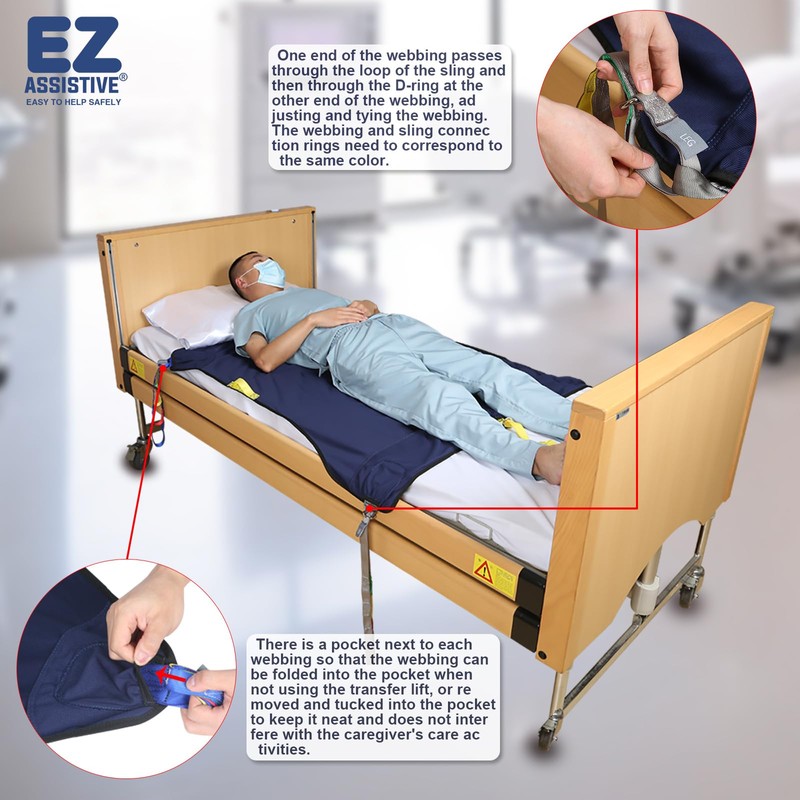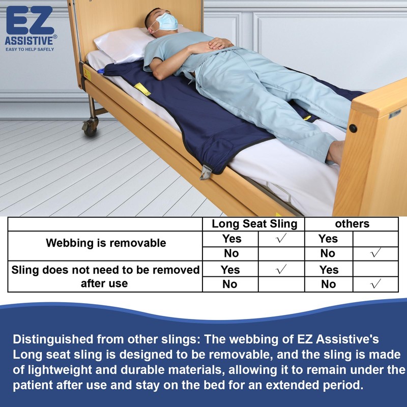 - 【Reducing frequent donning and doffing of slings】EZ Assistive hoyer lift sling features an innovative detachable strap design and soft, comfortable material, significantly reducing the inconvenience of frequent dressing and undressing for patients and caregivers. Its design allows the quick detach sling to remain on the patient's bed for extended periods, eliminating the need for removal after use, greatly simplifying the lifting and transferring process, thereby enhancing the efficiency and comfort of patient care.
