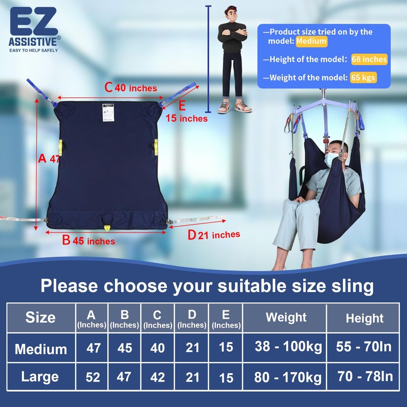 - 【Safe Working Load 500lbs(230kg)】 EZ Assistive has conducted rigorous static and dynamic load testing on the patient lift sling to ensure safety. Please pay attention to changes in the patient's weight and replace the medical lift sling within the safe load range in a timely manner.
