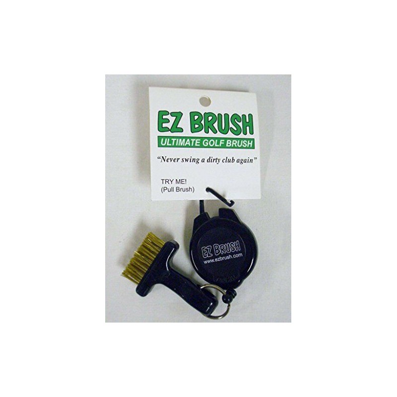 features a compact, ergonomically designed brush attached to a retractable nylon cord which extends up to 30 inches. The rugged brass bristles point downward and won't snag on your clothes when carrying your golf bag. The unique, patented design allows for more freedom and a greater range of motion while cleaning your clubs