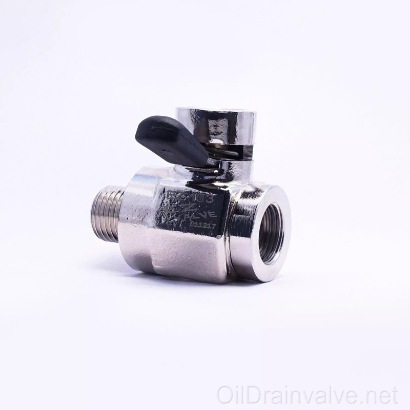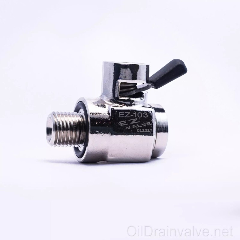 Install this valve and you can drain your engine oil without tools and without mess. Just lift the lever of this solid brass ball valve and give it a quarter turn to open it. Return the lever to its original position and it locks closed, double sealed to prevent leakage. The EZ Oil Drain Valve is made of corrosion resistant forged brass and stainless steel. The ball valve design provides a straight flow for efficient drainage and a perfect seal when closed. Frozen drain plug and stripped threads are eliminated forever. Drawing samples for oil analysis is as easy as one-two-three.