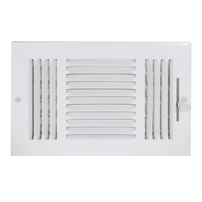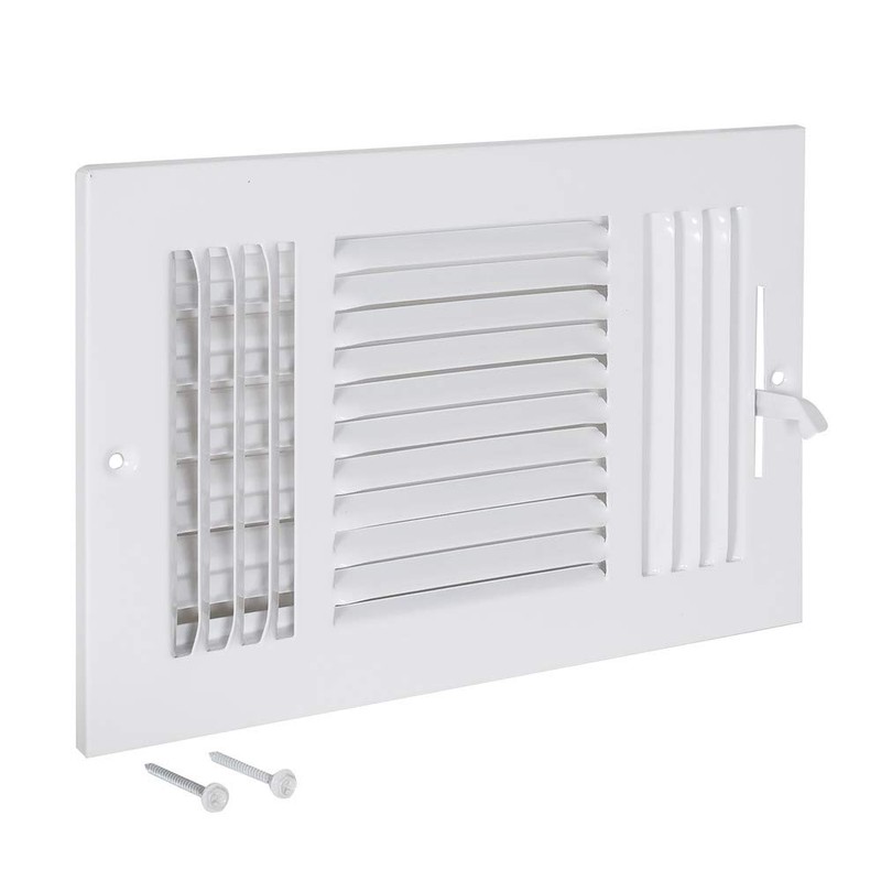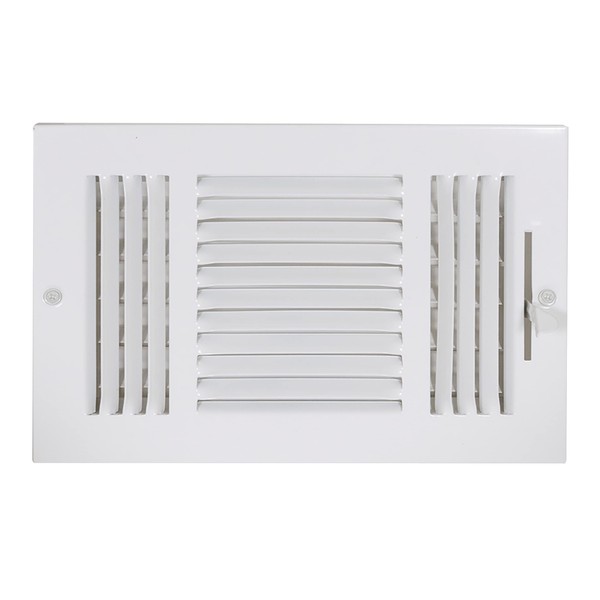 EZ-FLO 61614, White Three-Way Sidewall/Ceiling Register, 10 inch (W) x 6 inch (H), 10 in. x 6