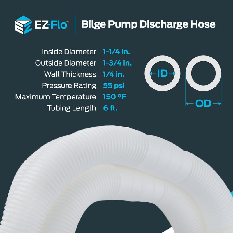 - BILGE PUMP DISCHARGE HOSE: This EZ-Flo discharge hose is designed for marine and low-pressure water for electric discharge applications and hand bilge pumps