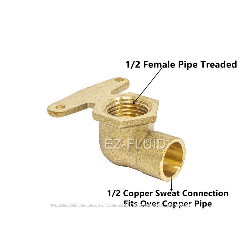 - EZ-FLUID 1/2" Nom. Copper Sweat X 1/2" Fip Threaded High Ear Elbow Fitting 1/2"C by F, Lead Free Brass Shower High Ear 90 Degree Elbow with Sweat Socket and Female Threaded Plumbing Fittings