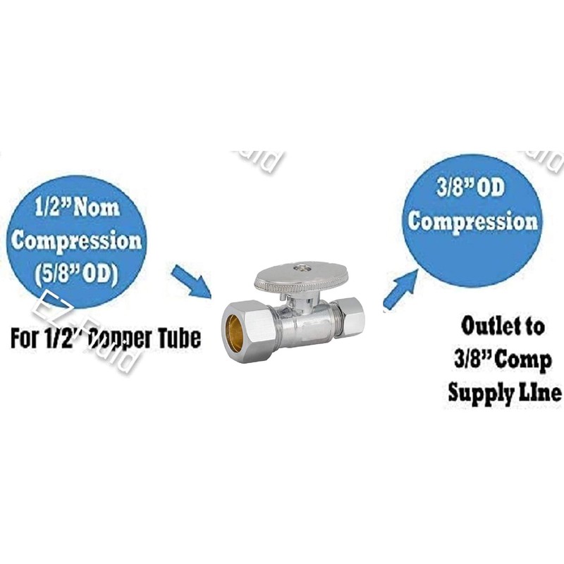 - 5/8" OD Comp x 3/8" OD Comp Straight angle stop ball valve Fits 1/2" Copper Pipe, it supplies Hot Cold Water For Faucet,Toilet water supply line and faucet supply line Great choice use as Toilet Valve,Faucet Valve