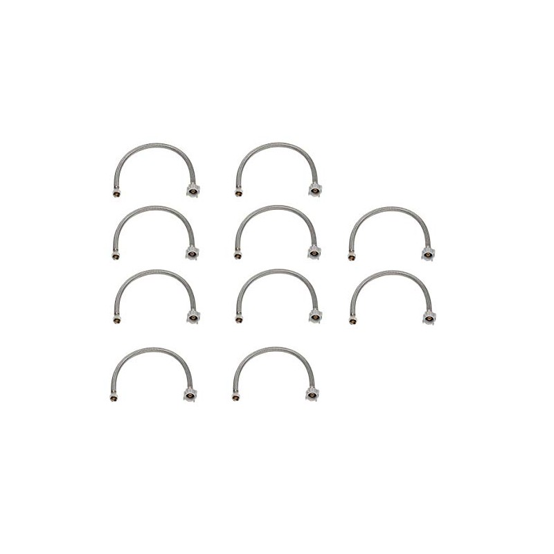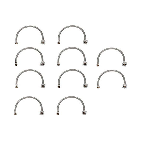 EZ-Fluid 16“ Toilet Water Supply Connector, Braided Stainless Steel - 3/8“ Female Compression Thread x 7/8” Female Ballcock Thread 16-Inch Toilet Water Connectors Hose (10-PACKS)