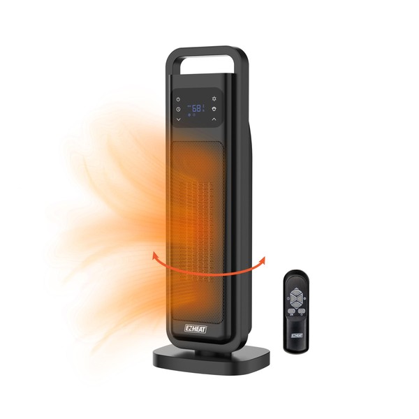 EZ-HEAT 26 inch Oscillating Digital Tower Heater with Remote Control for Indoor Use, Adjustable Thermostat, Timer, Overheat Protection, Tip-Over Switch, HT1206