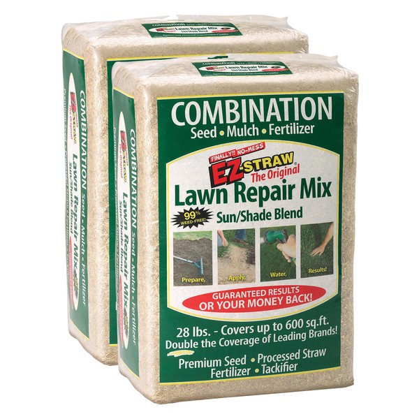 EZ Straw Lawn Repair Mix – Sun/Shade Blend – Combination Seed, Mulch, Fertilizer (28 lb. Covers 600 sq. ft.)