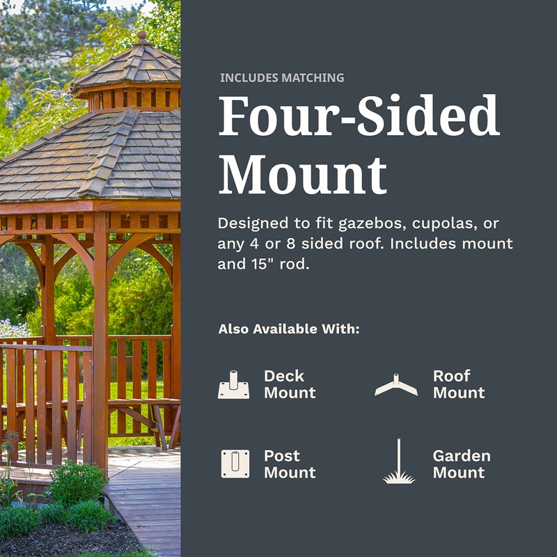 - Easy Installation – Installs in less than five minutes! Topper designs are interchangeable to easily customize for every season or occasion. Other mounting types can also be swapped, with options for a roof, garden stake, deck, or wood post.