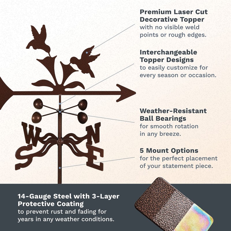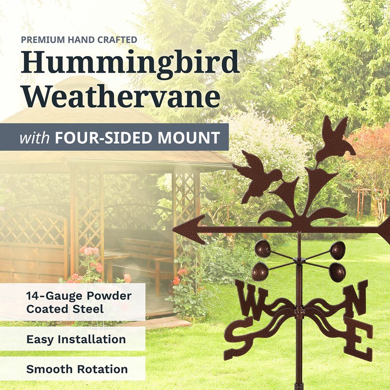EZ Vane Steel Hummingbird Weathervane 21” Height, Includes Metal 4-Sided Mount, Wind Cups & Brackets | Hand-Crafted and Family-Owned, Made in The USA with Triple Powder Coating, Limited