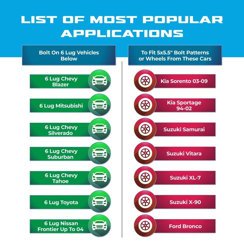 - 【Convert Wheel】Convert to wheel must be 5x5.5" or 5x139.7mm bolt pattern. Sold by pair (2 adapters)
