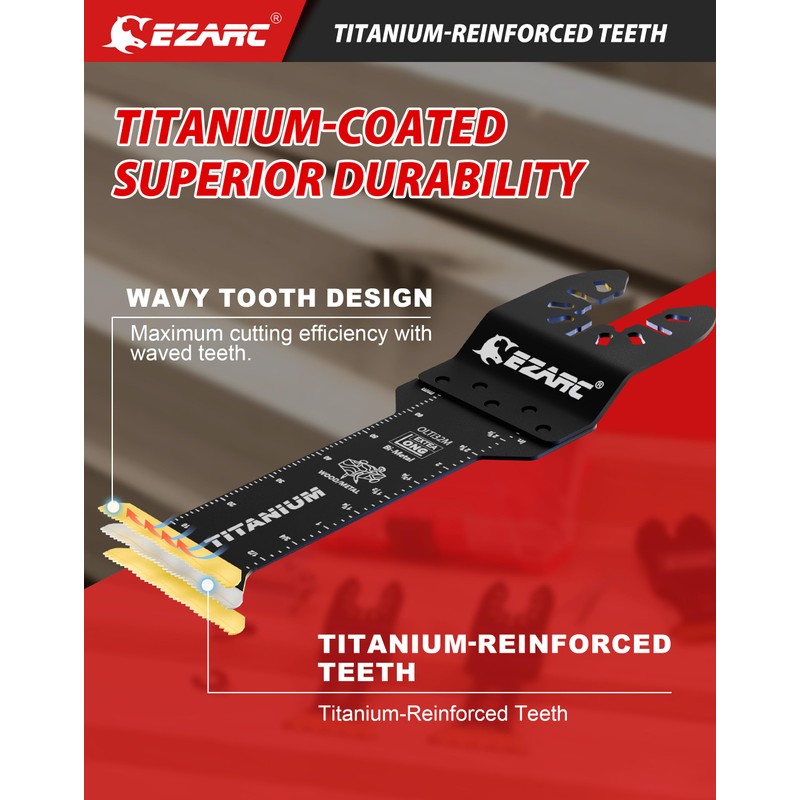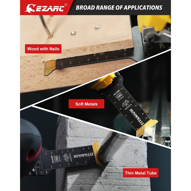 - 【Titanium Enhanced】EZARC oscillating saw blades with Titanium coated teeth for heat resistance, long life and superior chip evacuation. High performance titanium for greater durability and up to 2x longer life versus standard bi-metal blades