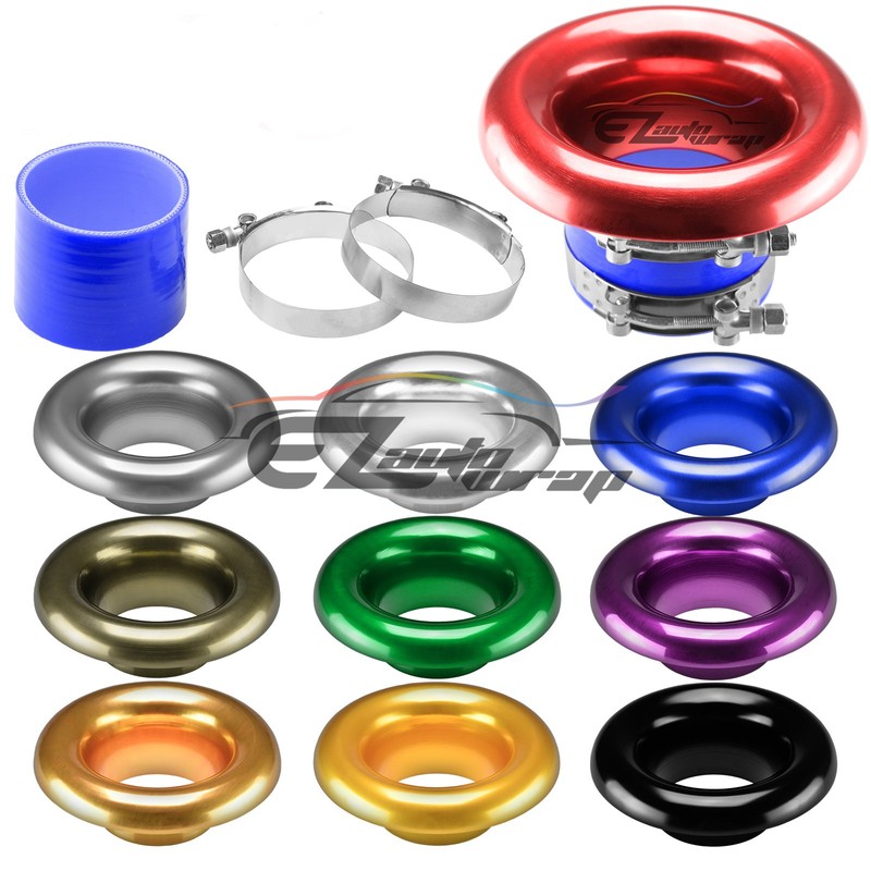 EZAUTOWRAP 4" Black Short Ram Cold Air Intake Turbo Horn Aluminum Alloy Velocity Stack Adapter Kit with Silicone Hose