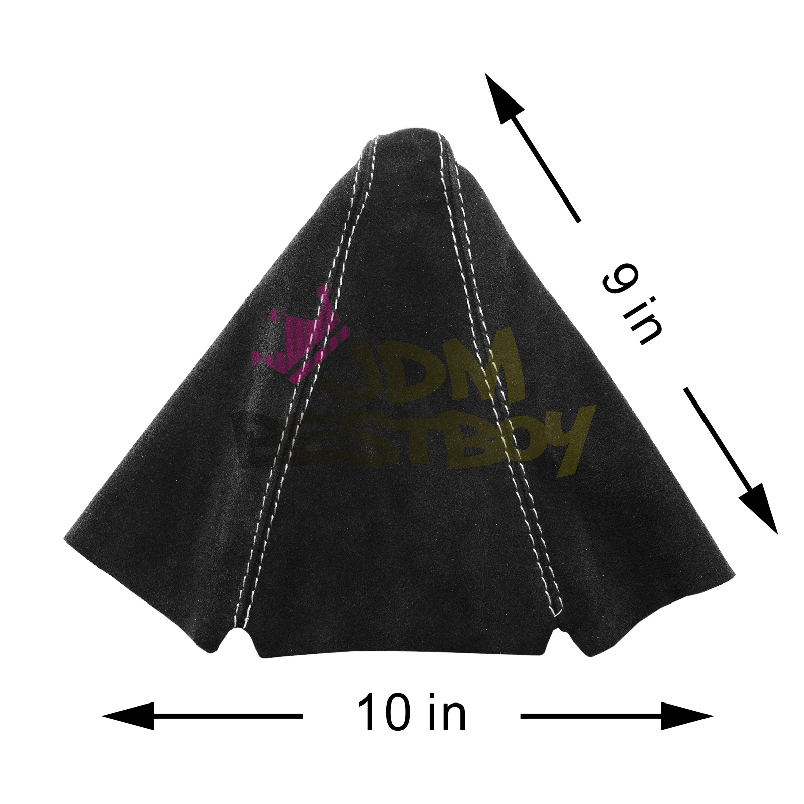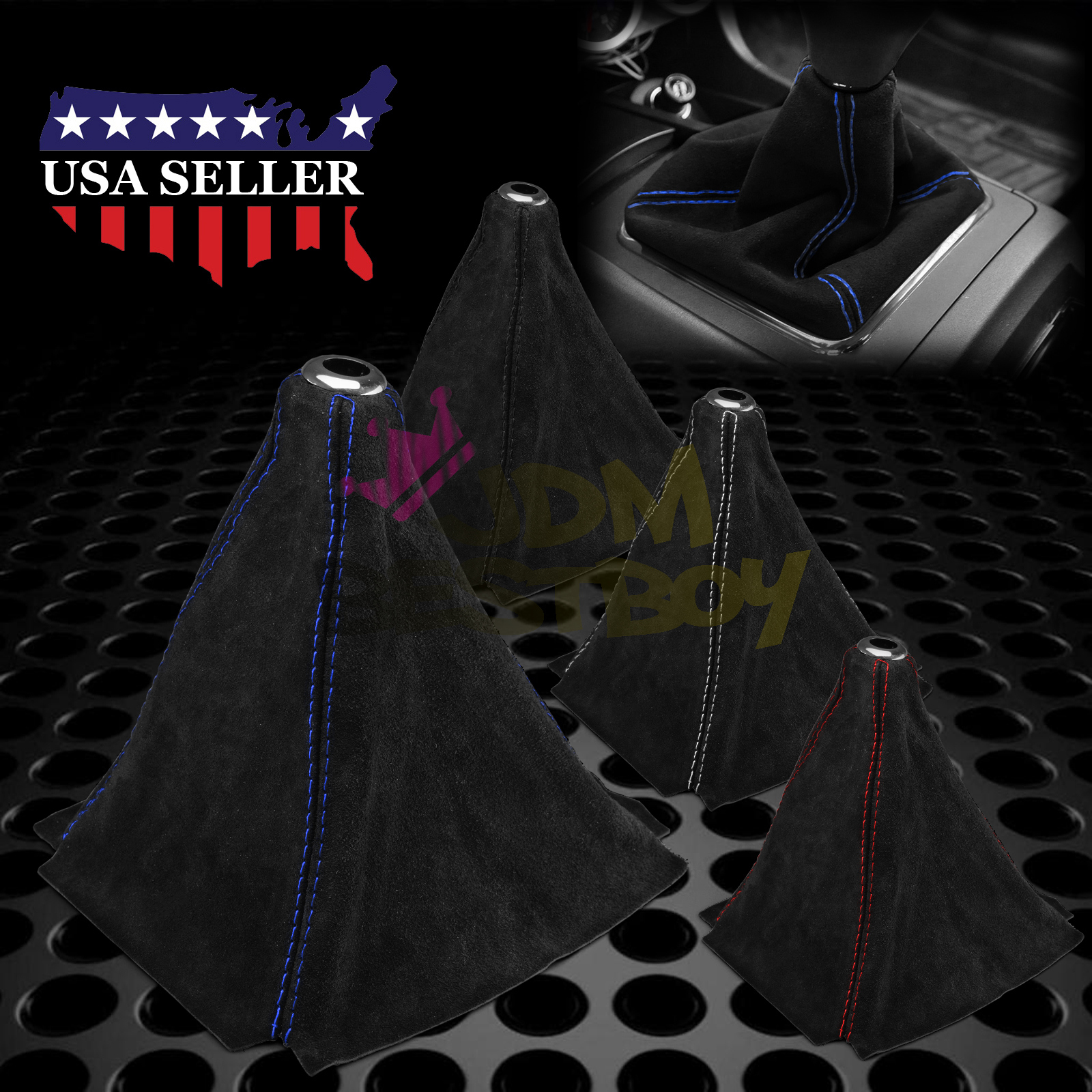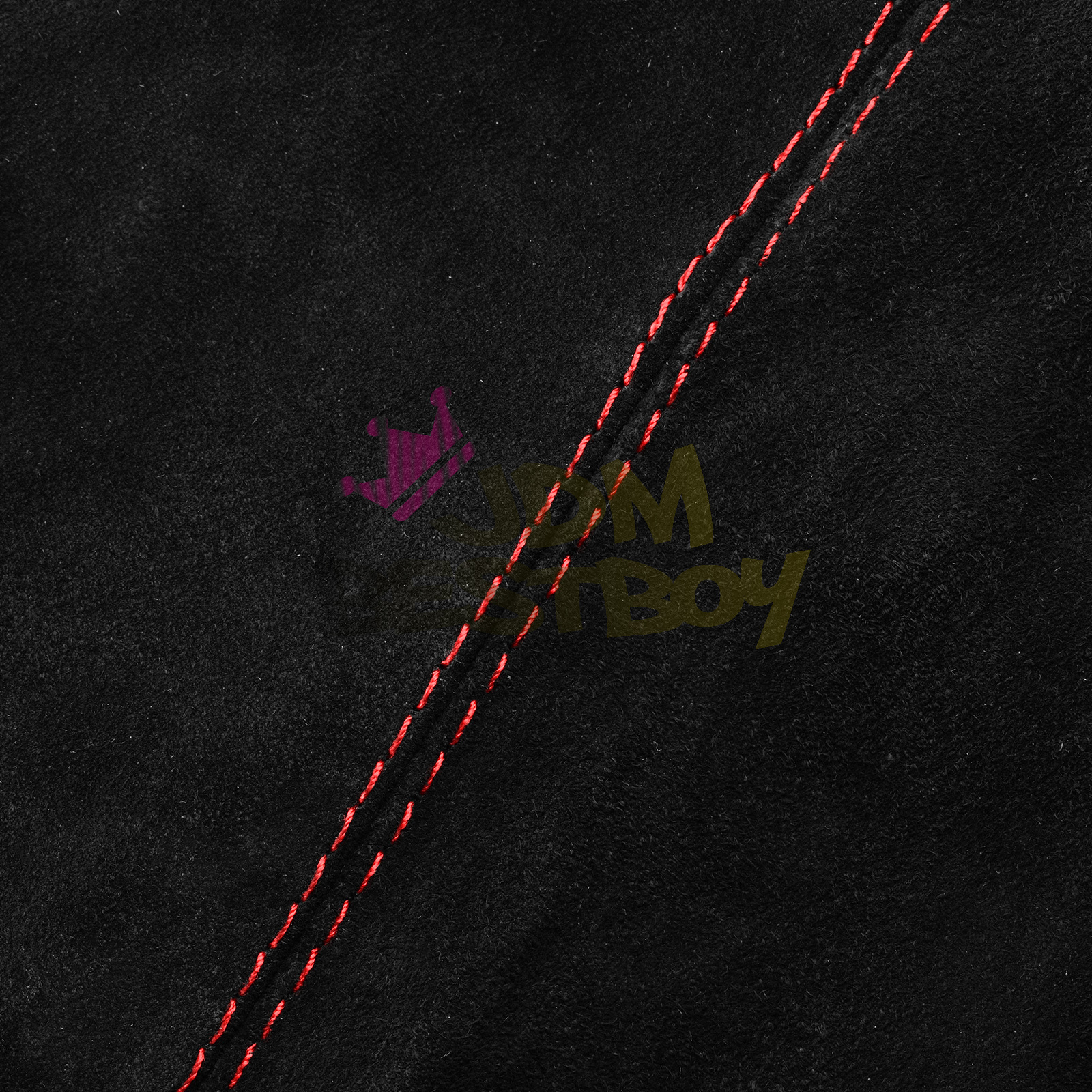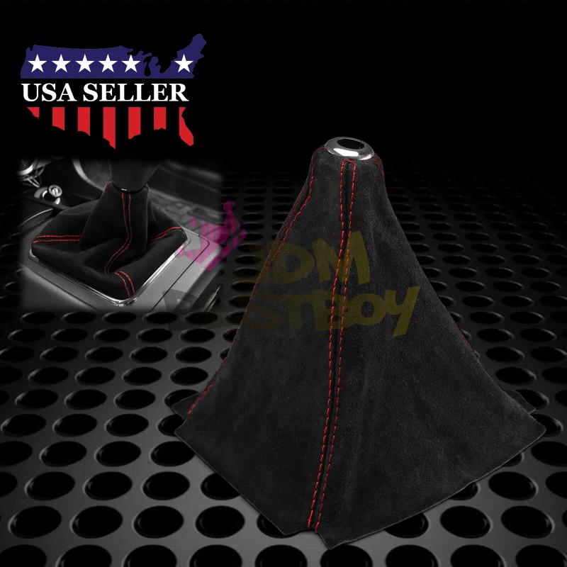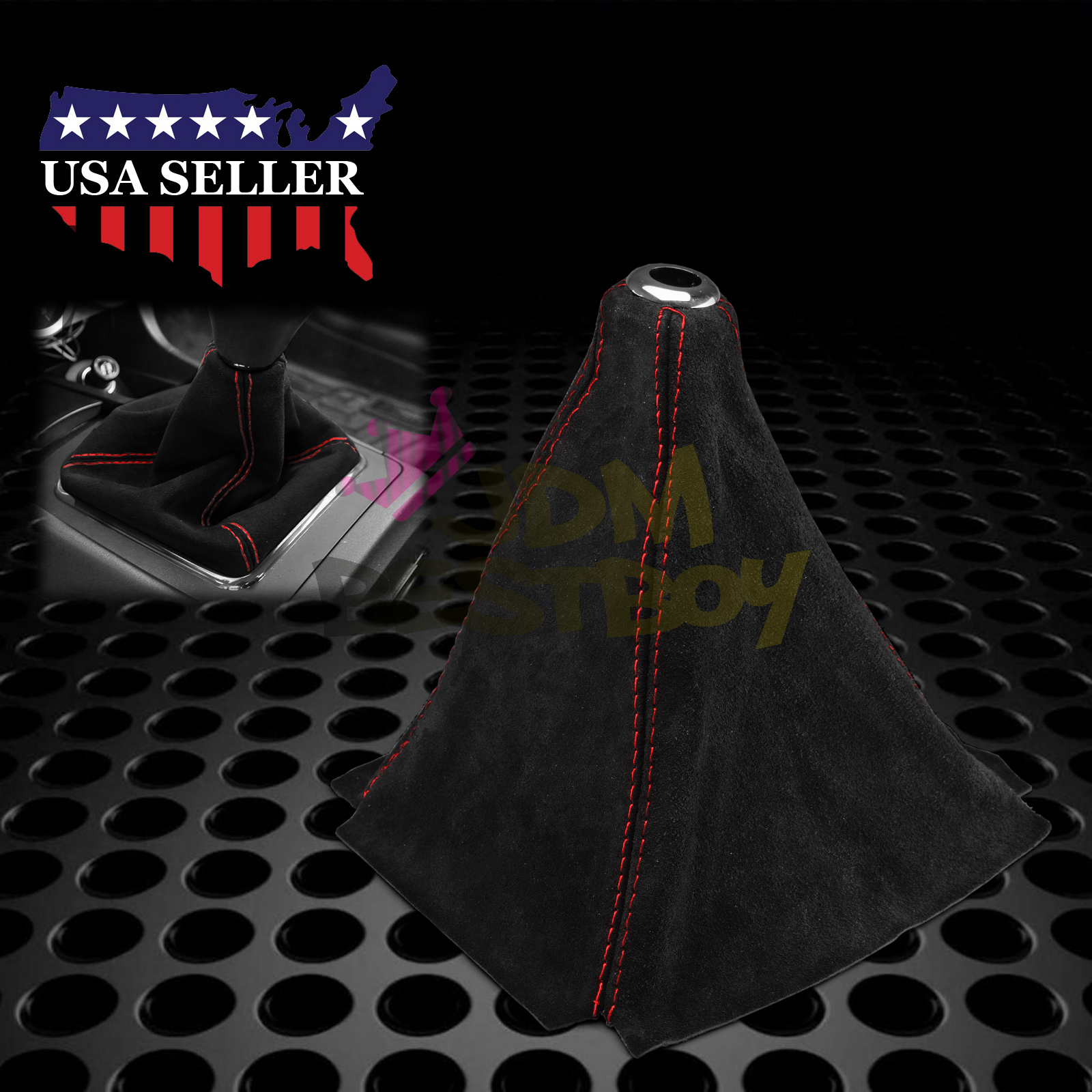 Genuine Leather Velvet Suede Shift Knob Boot Cover Black With Red Stitches