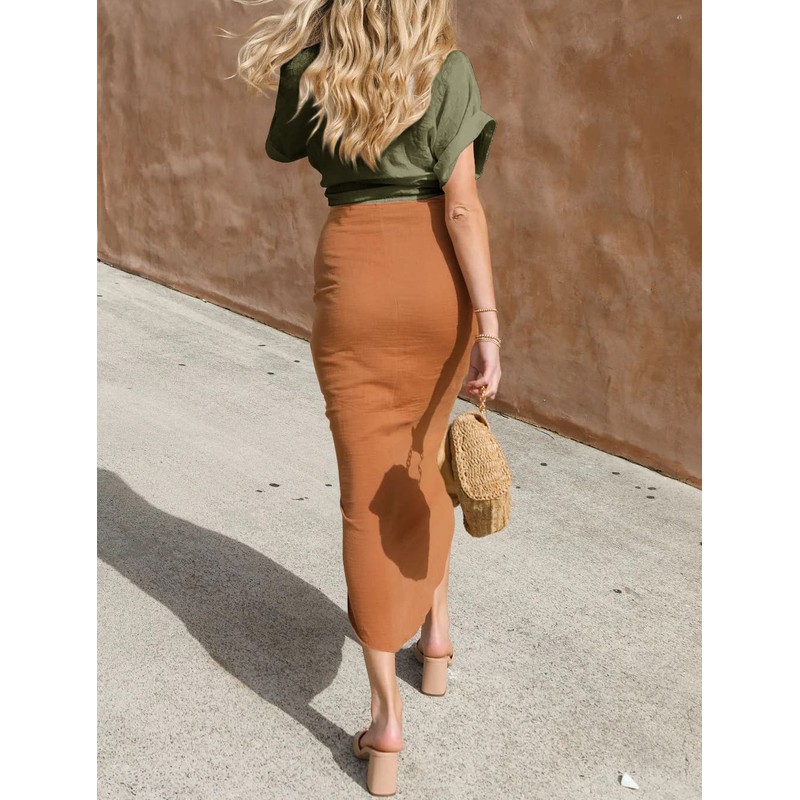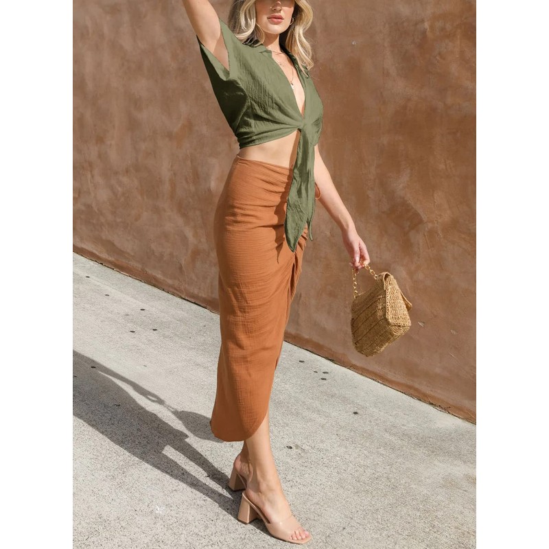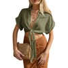Ezbelle 2026 Women's Deep V Neck Tie Front Knot Shirt Cardigan Crop Top Button Blouse Short Sleeeve Shirts Summer Front Top Army Green Small