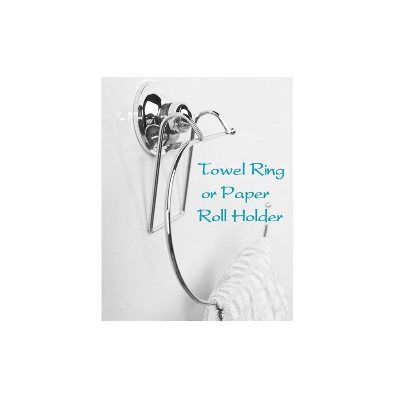 - Suction cup towel, paper (or toilet paper holder) keeps items within easy reach