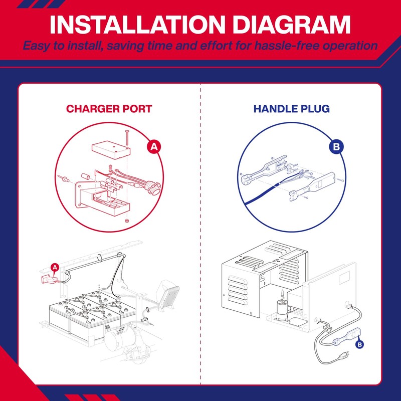 - [Package Include]: Package contain: 1pcs EZGO 36V PowerWise charger port, 1pcs 36V PowerWise charger handle plug, not include wires