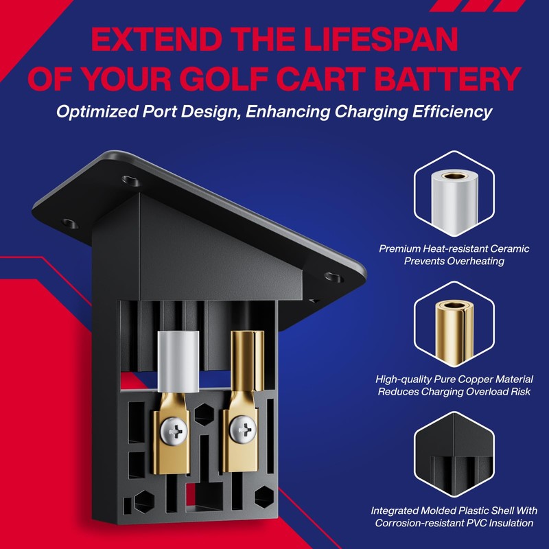 - [High Quality Material]: Golf cart charger socket and handle plug are made of high quality material, prevent wear and loose caused by frequent plugging, can withstand high temperature and long time charging pressure