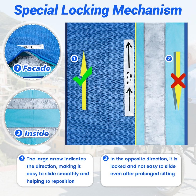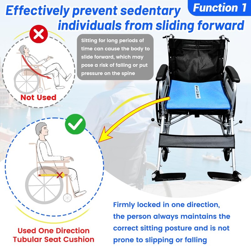 - Fall Prevention:The inner layer of the One Way Slide Seat Cushion is made of specially structured coating soft fabrics that allow easy sliding in one direction but lock completely in the reverse direction, preventing users from falling forward while allowing safe backward sliding.