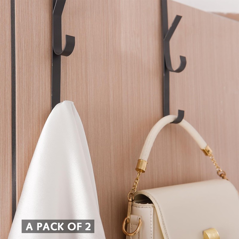 - 【Efficient Design】This coat rack is designed with vertical hooks to fit more securely on the door, reducing the possibility of slipping. The two packs are equipped with a total of 6 hooks, providing plenty of space to hang various items such as kitchen utensils, towels and personal accessories.