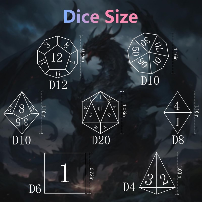- 【Polyhedral Dice Set】This complete 7-piece set includes all essential RPG dice (D4, D6, D8, D10, D12, D20, and D%) with clear, high-contrast numbering for effortless readability. Whether for Dungeons & Dragons or other tabletop adventures, you’ll always have the right die for any action.