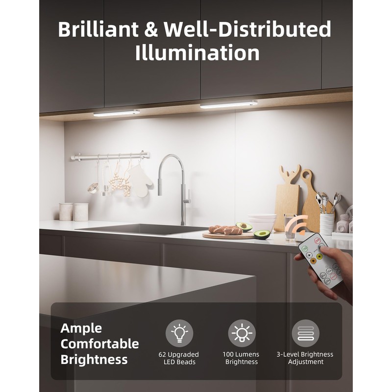 - 【Remote Control & Timer Features】Control these under counter lights easily with either the built-in buttons or the included remote. Set the closet lights to always on/off, adjust brightness, or switch between color temperatures. The remote also offers a timer function with six options, from 15 to 120 minutes, providing flexible control over how long the light stays on.