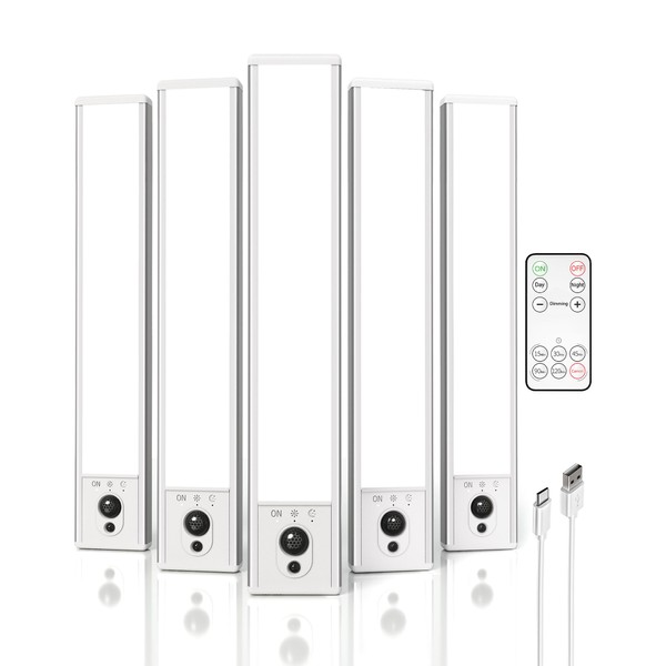 EZVALO 5 Pack Under Cabinet Lighting, Rechargeable Motion Sensor Light, LED Closet Lights Wireless, 5700K Dimmable, Timer, Magnetic, with Remote Control for Kitchen, Closet, Stair